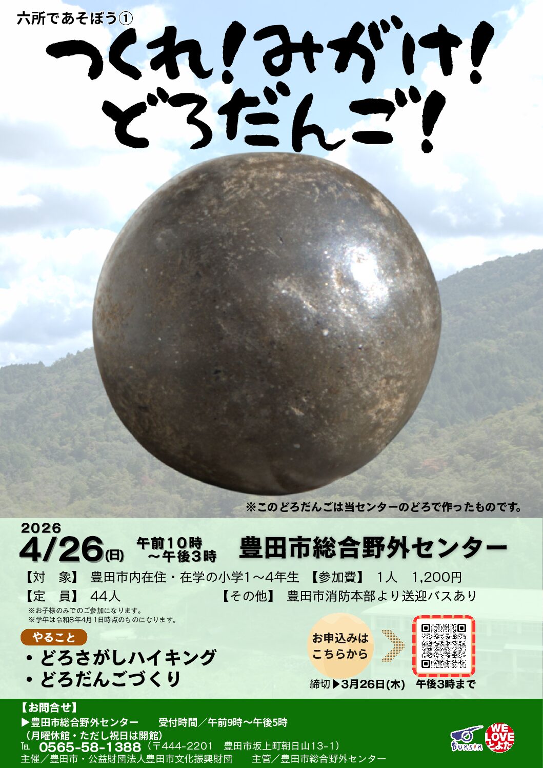 ■と き 令和8年4月26日(日)午前10時~午後3時■対 象 豊田市内在住・在学の小学1年生~小学4年生■内 容 どろさがしハイキング、どろだんごつくり■定 員 抽選44人■参加費 1人1,200円■その他 豊田市内よ […]