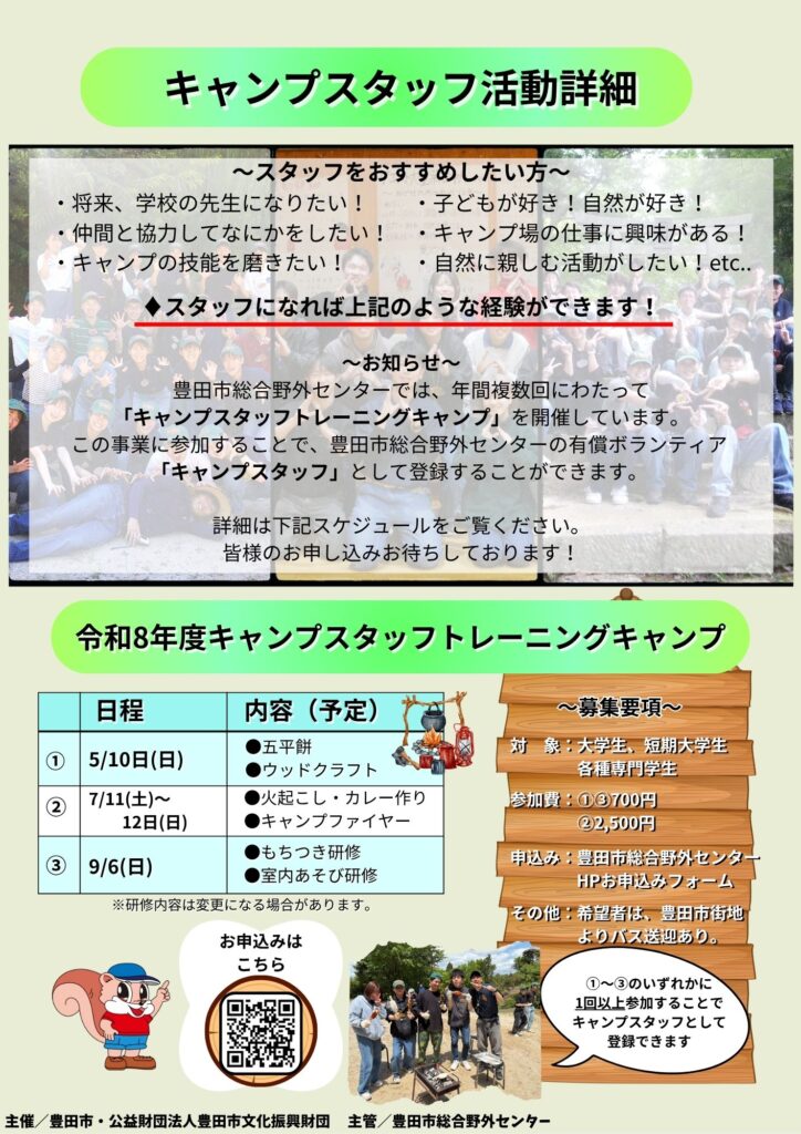 【募集中】キャンプスタッフトレーニングキャンプ①