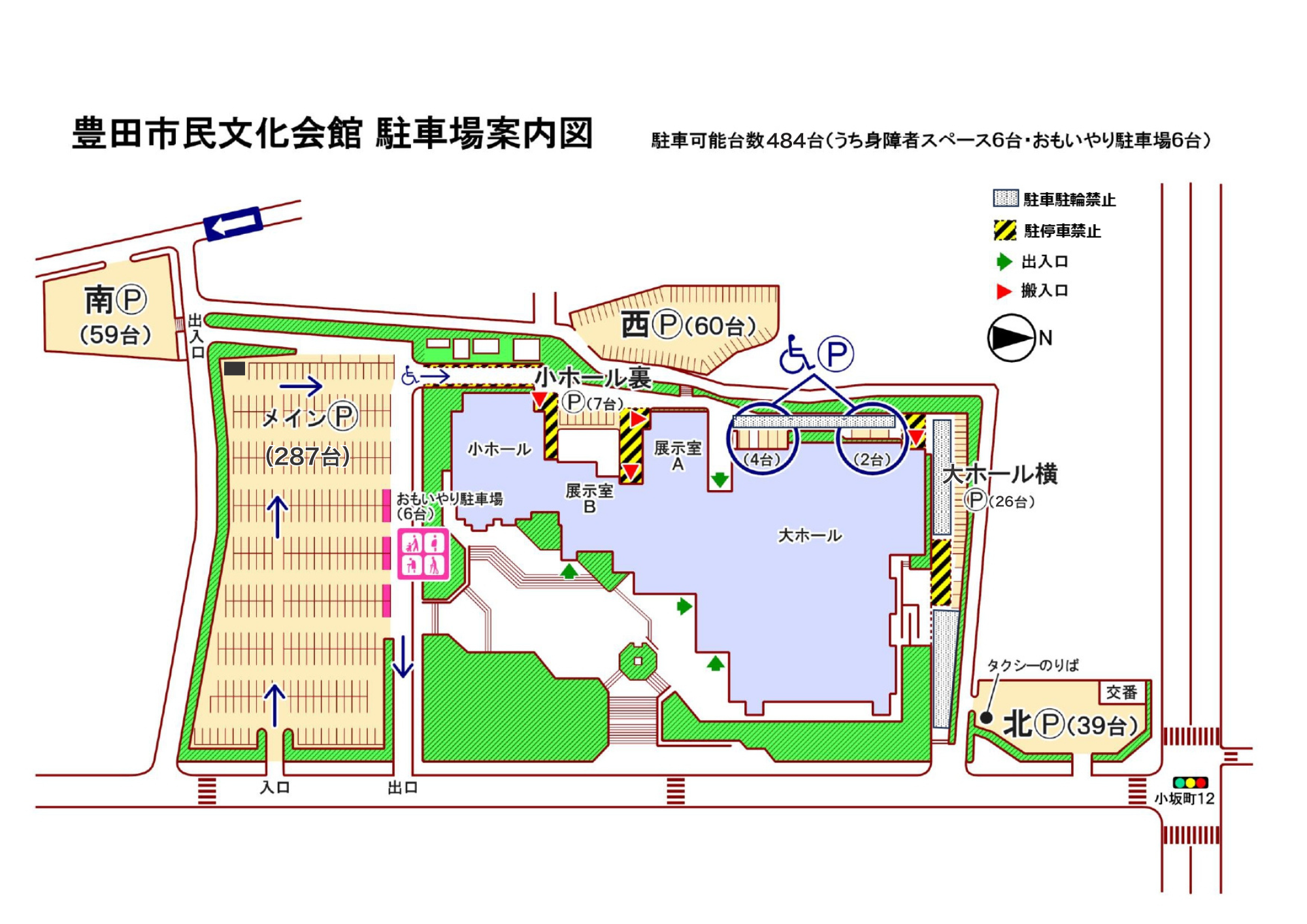規模の大きな催事・公演・展示会などのとき、また、土日・祝祭日には、駐車場の 混雑、 周辺道路の 渋滞、混雑 が予想されます。じゅうぶんに 時間にゆとりを持ってお出かけください。公共交通機関のご利用にご協力ください。※豊田市駅から徒歩で15~20分です。