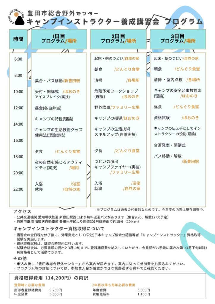 ■対 象 18歳以上でキャンプ指導者を目指す人かつ全日程受講可能な方